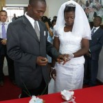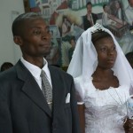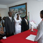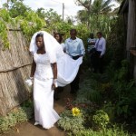 Na wat supersnelle familiefoto`s gaan we naar de kerk. Ook daar gaat het zingen door. Bij de inzegening vragen ze alle voorgangers en zendelingen om mee te zegenen, dus ook Frank spreekt zijn gebed uit, tegelijkertijd met de anderen. Vervolgens is er een tijd voor een ieder die iets wil zeggen of het stel iets mee wil geven en daarna… tijd voor de cadeaus! De vrouwen van de kerk komen al swingend aangelopen en geven de eerste praktische benodigdheden voor de bruid: manden, wasmanden, knijpers en……..