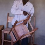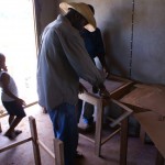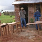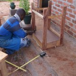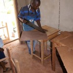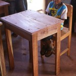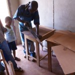 Zagen, timmeren, schuren, lakken… gelukkig had hij wel wat hulp. Het was meer werk dan hij tevoren ingeschat had en hij had ook niet genoeg hout berekend. Dit jaar zijn er in de hoogste klas (klas 2, met 8- jarigen) 30 kinderen aangenomen op de school, maar nog niet alle leerlingen zijn op komen dagen. Tot nu toe zijn er 21 kinderen en dus zijn er alvast 21 tafeltjes en stoeltjes afgemaakt zodat de klas snel kon beginnen. De verwachting is dat in de loop van het schooljaar ook de andere kinderen binnen zullen druppelen, dus aan de andere 9 wordt nog hard gewerkt!