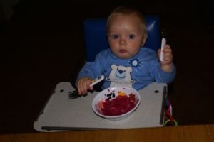 Judah vond de bietenprak helemaal heerlijk en dat is leuk, want paps en mams Walstra gaven mij ook als een van de eerste dingen een bietenprak en ook ik kon daar als klein ukkepukkie lekker van genieten!