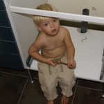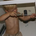 Met de aankomst van de container werd mijn klussenlijst meteen een stuk langer. Kasten moesten in elkaar worden gezet. Spullen moesten worden uitgezocht, ingeruimd, weggeven en opgeborgen. Één van de grote cadeaus in de container was het badkamermeubel van Ikea dat er in zat. Eerst een hele puzzel om uit te zoeken wat bij wat hoort en dan aan de slag. Judah had de tijd van zijn leven:  samen met papa de hele ochtend sleutelen. Hij doet niets liever dan helpen, dingen aangeven enzovoort. Zijn twee favoriete dingen zijn: werken met een schroevendraaier en timmeren met de hamer- tôh, tôh, tôh!