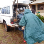 Sandra achter het stuur, de zwangere dame ernaast, Judah en jawel moeders moest er ook nog bij. De wegen waren voor onze begrippen onbegaanbaar; de kuilen die er altijd al zijn zitten nu vol met water, zijn glibberig en voor mij……. doodeng, maar voor Sandra normaal – dit hoort erbij. Op naar hun nieuwe huis. Ik had al veel bewondering voor onze kinderen, maar als je deze dingen mag meemaken dan krijg je nog meer waardering voor ze. Worden zij voor deze dingen betaald? Nee, niets is minder waar het is….. liefde, de liefde van de Heer voor de bevolking hier. Daar kan ik nog veel van leren.