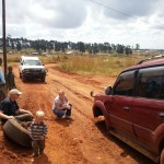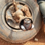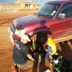 Frank komt vanmorgen terug van de stad, rijdt van de geasfalteerde weg af, de zandweg naar ons huis toe op. Dat is een flinke bocht en het gaat daar lekker naar beneden, dus die bocht neemt hij met 3 km per uur. En dan ineens…. schiet zijn complete linker voorband van de auto af!!!! Gelukkig kan Frank de auto snel tot stilstand krijgen, maar zoiets kun je toch alleen weer in Afrika meemaken???? Frank en pap zijn de rest van de dag bezig de auto te repareren. Gelukkig heeft pap veel verstand van auto’s en zijn er onderdelen verkrijgbaar. Morgen gaan ze weer verder sleutelen, want we willen zondag naar Malawi rijden om dinsdag mijn ouders weer veilig op het vliegveld aldaar te kunnen zetten. Maar wat ons betreft mogen ze ook nog wel even langer blijven, hoor!