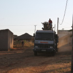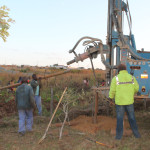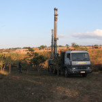 Gister zijn ze aangekomen met hun hele uitrusting: 1 vrachtwagen met de machine, andere vrachtwagen en een trailer met de pijpen, een team van 5 man sterk. Gistermiddag hebben ze de eerste 18 meter geboord (door zand) en vanmorgen hebben ze de andere boorkop erop gezet om door te kunnen boren door steen. Ze begonnen vanmorgen rond 5:00 en zijn dus nu alweer 5 uur bezig. Frank zal daarna nog een flinke klus hebben om alle pijpen en elektriciteit om te leggen, maar dat is voor volgende week; wij gaan vanmiddag een weekje naar het meer (Frank leidt de aanbidding bij een conferentie).