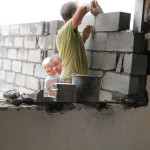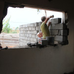Op de eerste foto kun je goed zien waar de aanbouw aan de achterkant van het huis nou precies is (op verzoek: speciaal voor jou, Magda 😉 ). Gister was het tijd om een muurtje te slopen om een raam te kunnen verzetten. Gelukkig ging hij diezelfde dag ook weer dicht – anders was het wel erg winderig geweest in onze slaapkamer…